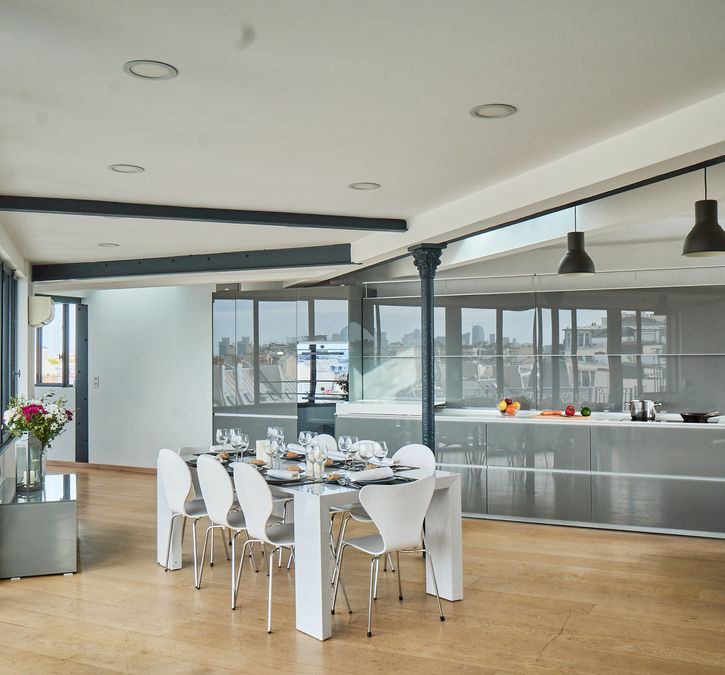 Located on the upper floors (7th, 8th and 9th levels) and accessible by lift, this approximately 100 m² apartment extended by nearly 70 m² of 360° wraparound terrace offers a rare experience above the rooftops of Paris. A true urban belvedere, the property benefits from an ideal west-facing exposure for…